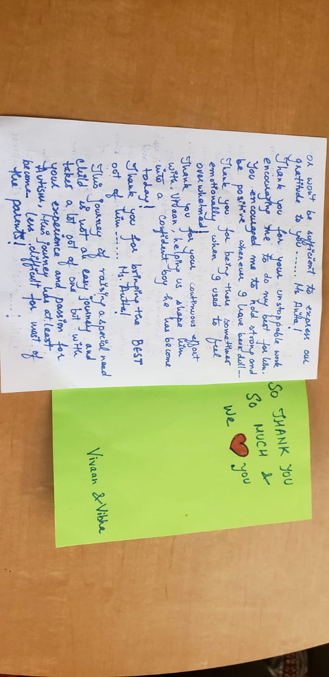 When we first learned about our son's autism diagnosis, we felt completely lost and overwhelmed. Finding Myra Care Foundation was a turning point for our family. The team didn't just work with Arjun—they taught us how to understand him, support him, and celebrate his progress, no matter how small. Today, he's more confident, communicative, and happy. Myra Care gave us hope when we needed it most, and for that, we'll be forever grateful."